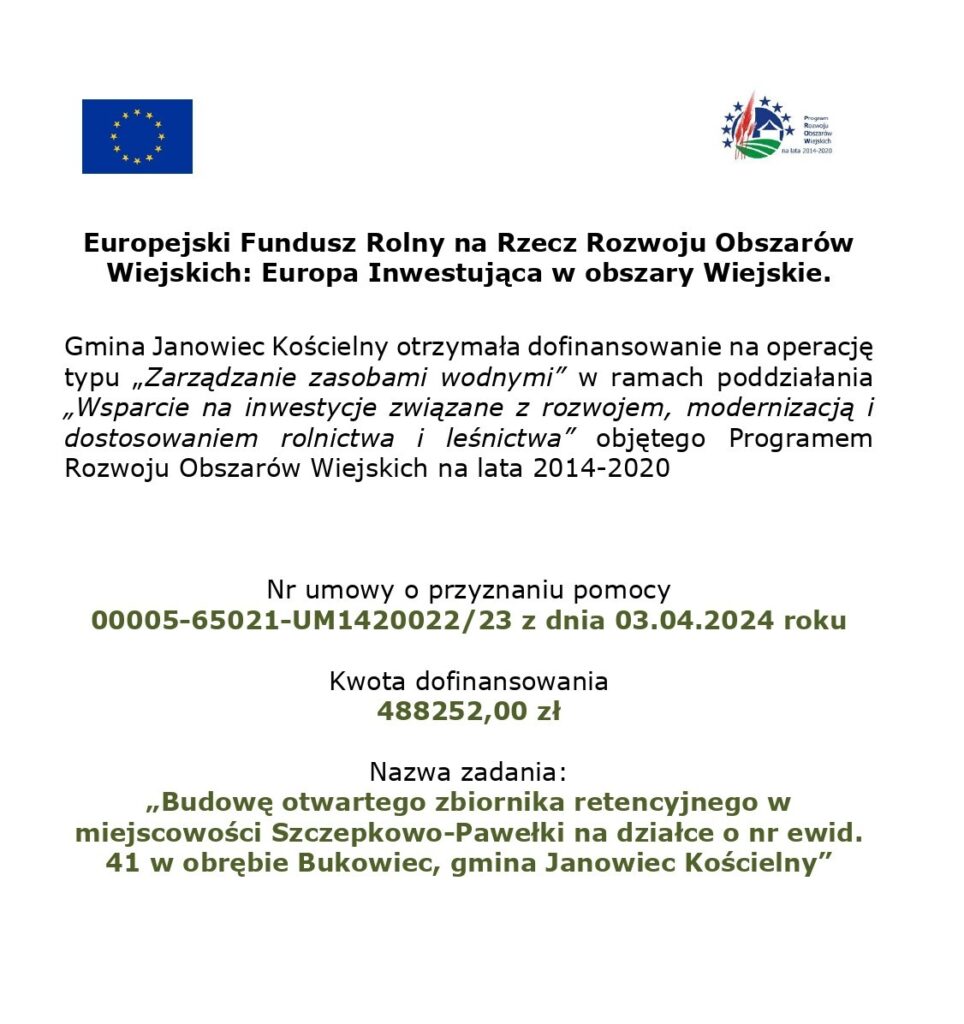 Budowa otwartego zbiornika retencyjnego w miejscowości Szczepowo-Pawełki Nikodem Usiądek2025-06-16T07:37:42+02:0023 kwietnia, 2024|Projekty Unijne 2014-2020|