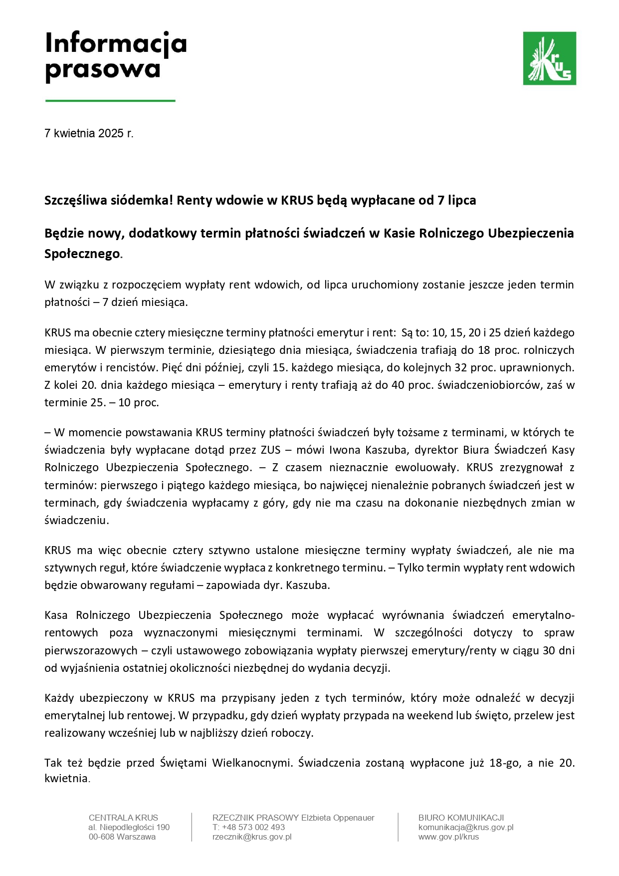 Renty wdowie w KRUS będą wypłacane od 7 lipca Nikodem Usiądek2025-04-16T11:46:05+02:0016 kwietnia, 2025|Aktualności|