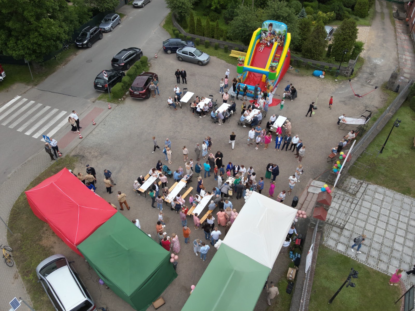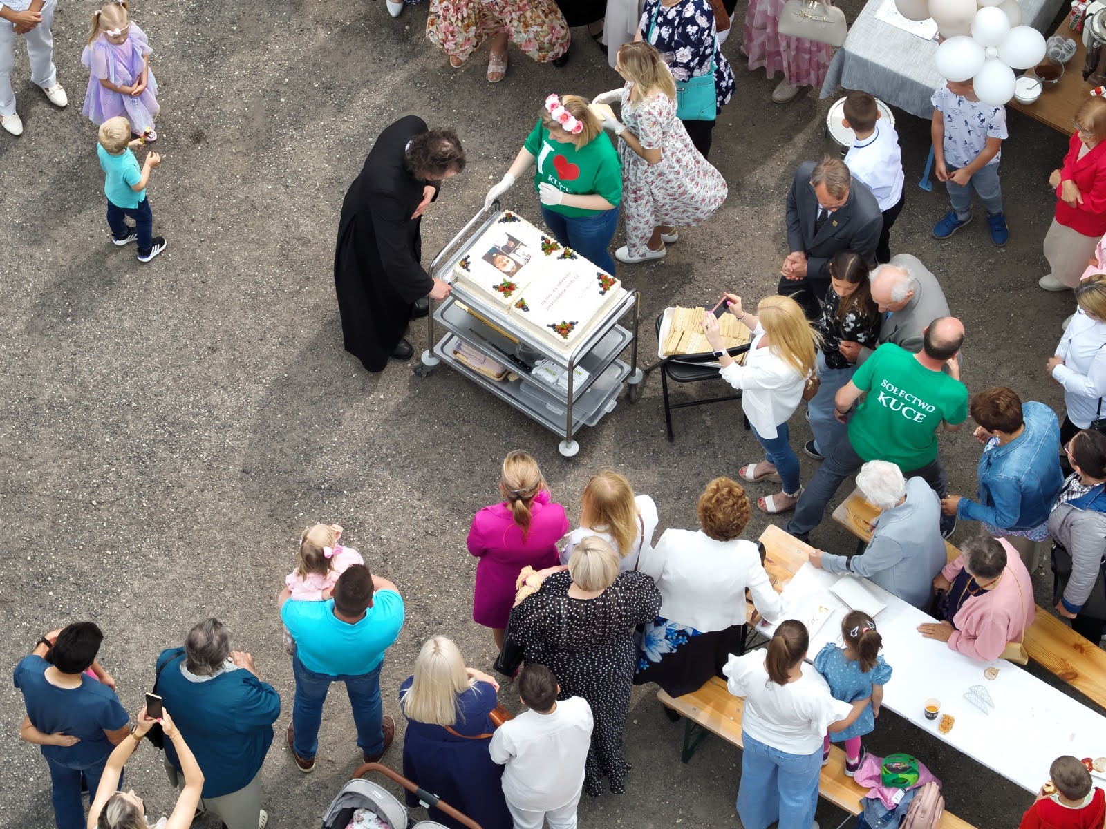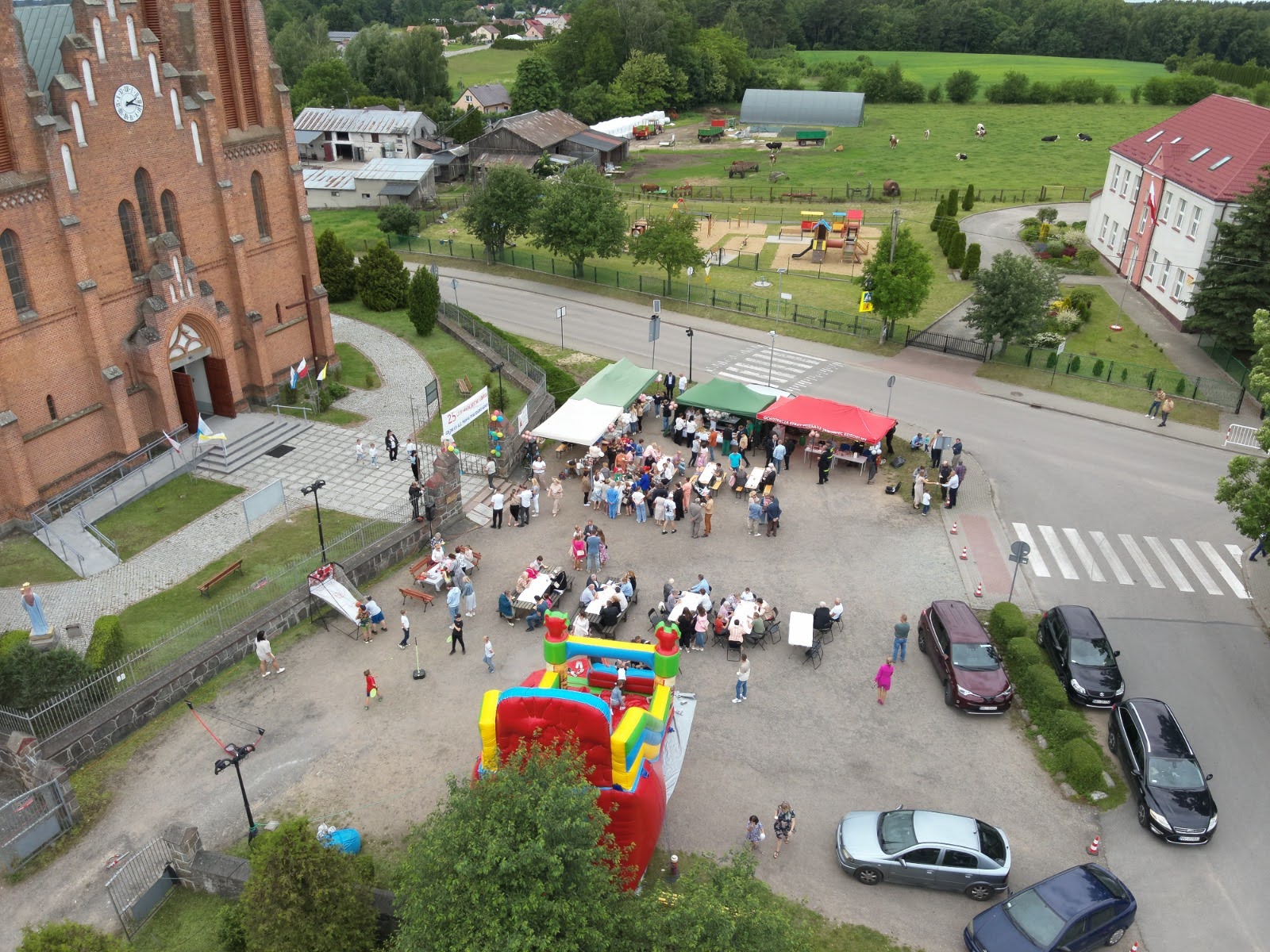Po Mszy Świętej na placu przykościelnym rozpoczął się rodzinny piknik. Piękna pogoda, uśmiechy i serdeczna atmosfera sprawiły, że wydarzenie przyciągnęło tłumy mieszkańców. Czekało na nich wiele atrakcji: dmuchańce dla dzieci, zabawy plenerowe, muzyka, wspólne śpiewanie i mnóstwo pyszności. Na szczególną uwagę zasługiwały stoiska przygotowane przez lokalne grupy: