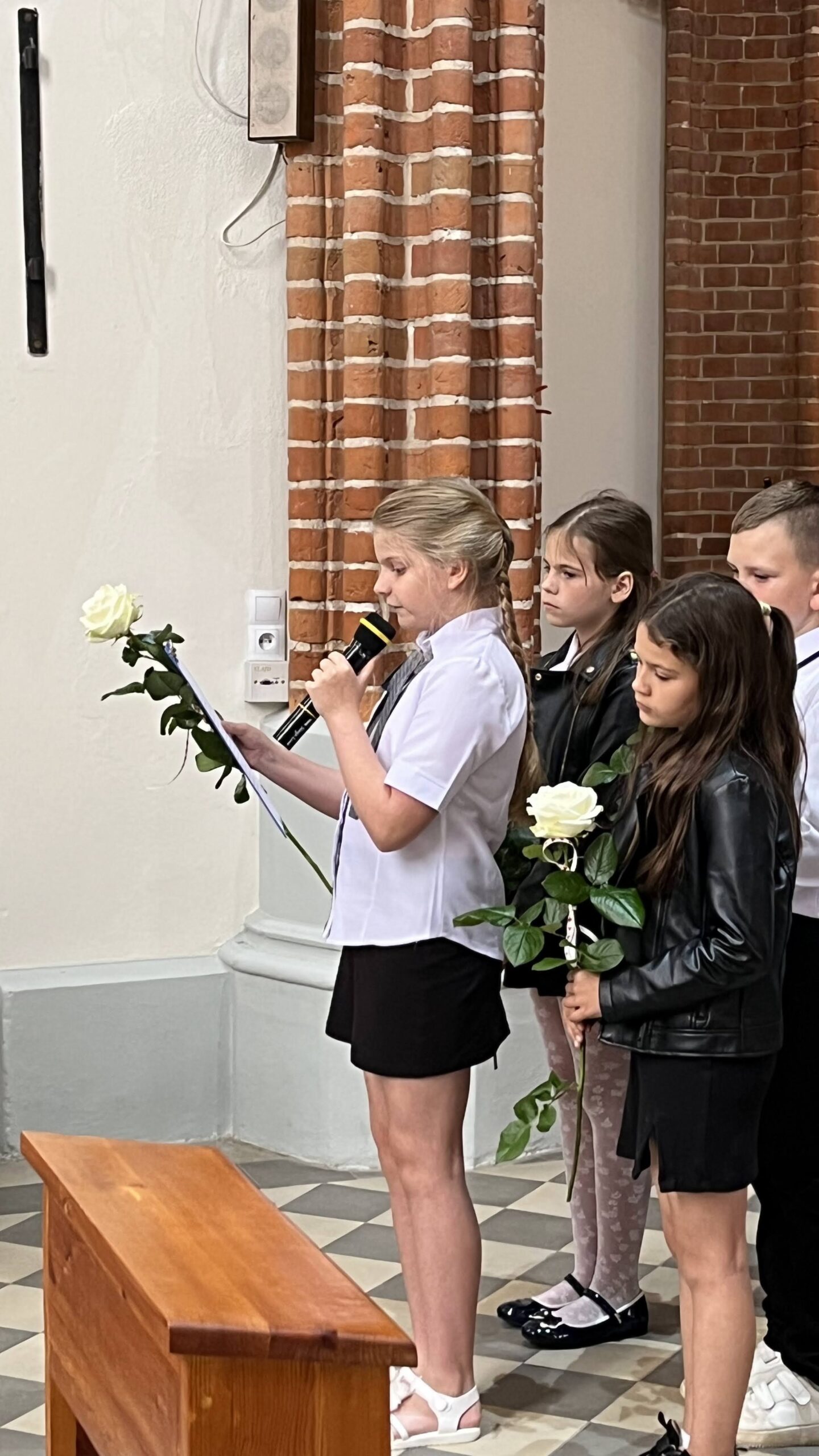 Nie zabrakło również solowego występu Aleksandra Gąsiorowskiego- młodego i utalentowanego mieszkańca parafii, który wykonał piosenkę dedykowaną jubilatowi. Jego pełen emocji śpiew spotkał się z ogromnym uznaniem i poruszył serca wszystkich obecnych.