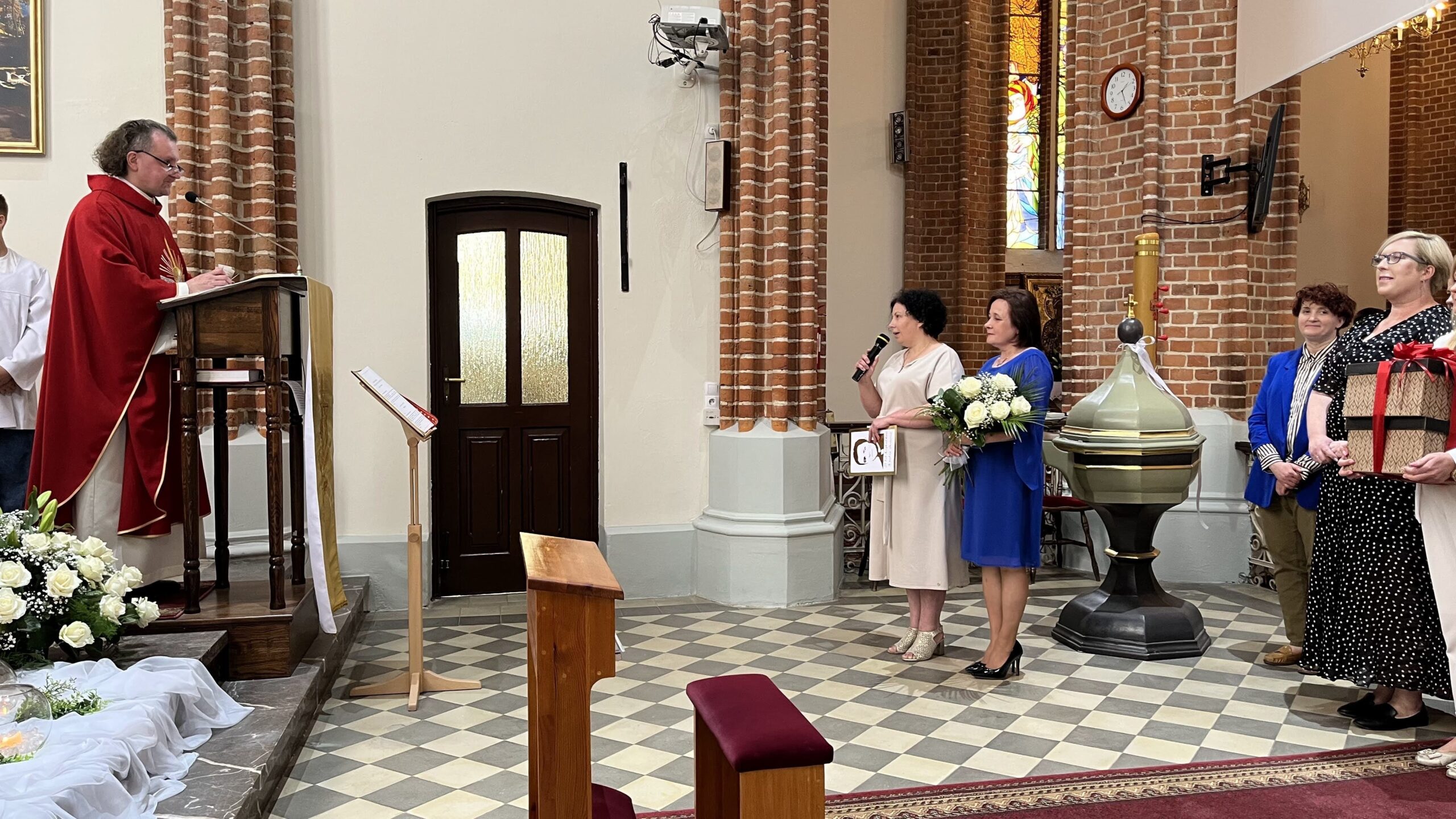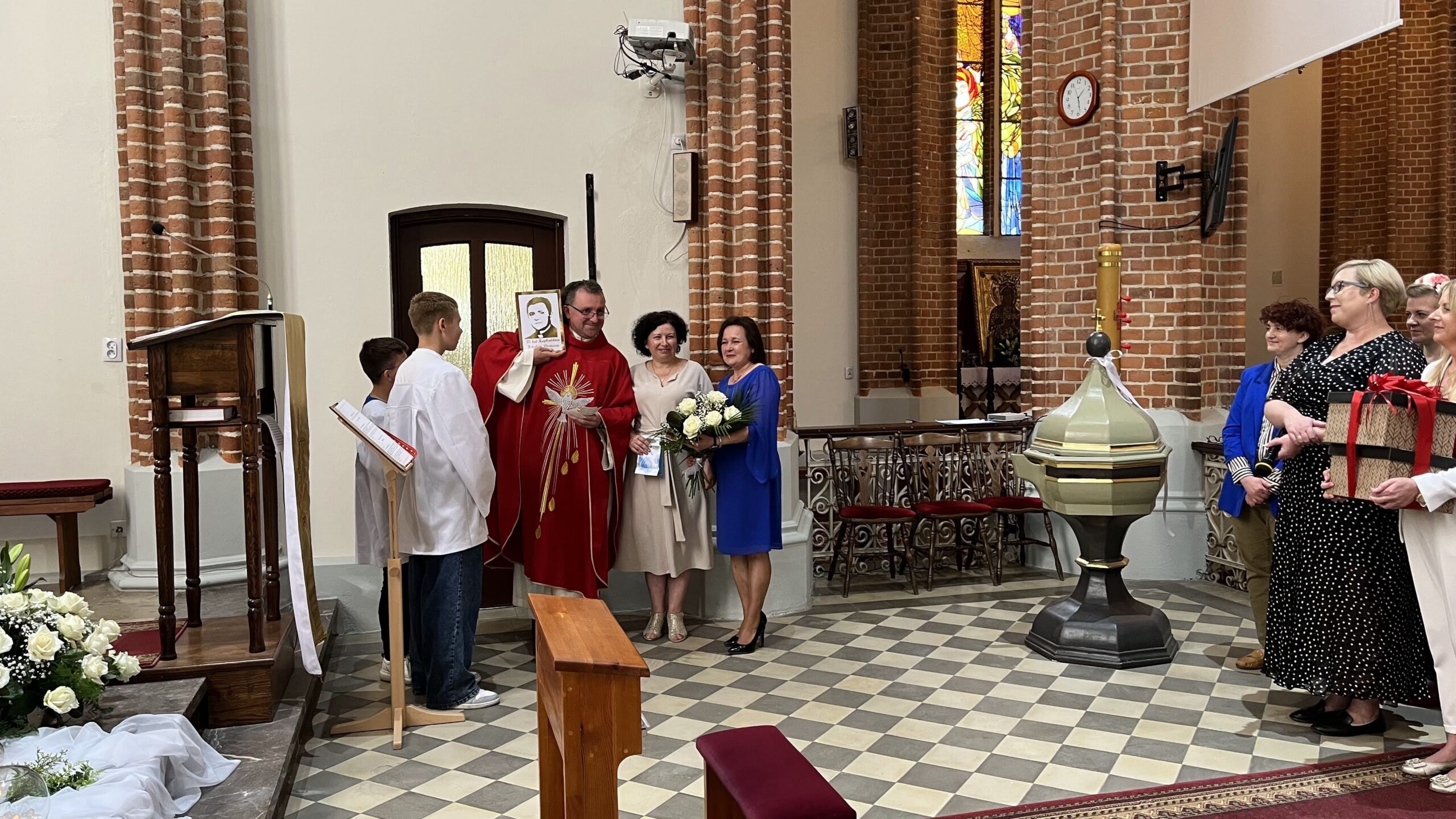 Uroczystości rozpoczęły się od Mszy Świętej dziękczynnej, podczas której ksiądz proboszcz przyjął liczne życzenia i podziękowania za wieloletnią posługę kapłańską. Modlitwą objął swoich zmarłych rodziców oraz obecną na uroczystości siostrę i jej rodzinę, a także wszystkich, których Pan stawia na drodze Jego kapłańskiej posługi. Życzenia, kwiaty i ciepłe słowa podziękowań płynęły nie tylko od parafian, ale również od przedstawicieli lokalnych organizacji i grup parafialnych. Wzruszony ksiądz proboszcz dziękował za każde dobre słowo i wspólne lata pracy duszpasterskiej.